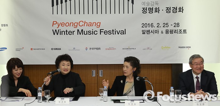 정명화와 정경화 공동 예술감독은 27일 서울 중구 그랜드 앰버서더 서울에서 열린 '2016 평창겨울음악제' 기자간담회에 밝은 모습으로 나섰다. 먼저 마이크를 잡은 정명화 예술감독은 "강원도는 지난 10년간 평창동계올림픽을 위해 대관령국제음악제를 추진해왔다. 올림픽을 2년 앞두고 이를 확장해 겨울음악제를 함께 시작하게 돼 기쁘다"고 밝혔다.