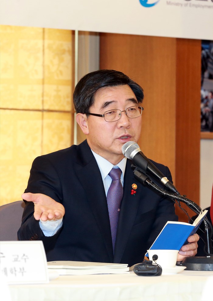 (서울=포커스뉴스) 이기권 고용노동부 장관은 28일 오전 서울 중구 프레스센터에서 열린 노동개혁 현장 실천을 위한 전문가 간담회에 참석해 의견을 수렴하고 있다. <사진제공=고용노동부>