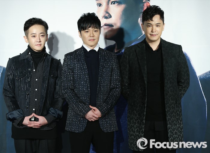 (서울=포커스뉴스) 27일 오후 서울 용산구 현대카드 언더스테이지에서 열린 엠씨 더 맥스(M.C The Max) 정규 8집 'pathos' 발표 기자간담회에 참석한 멤버들이 포토타임을 갖고 있다. 왼쪽부터 제이윤, 전민혁, 이수.