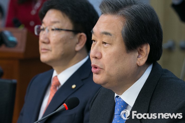 (서울=포커스뉴스) 김무성(오른쪽) 새누리당 대표가 27일 오후 서울 여의도 국회 의원회관에서 열린 청년 공천 설명회에 참석해 인사말을 하고 있다.