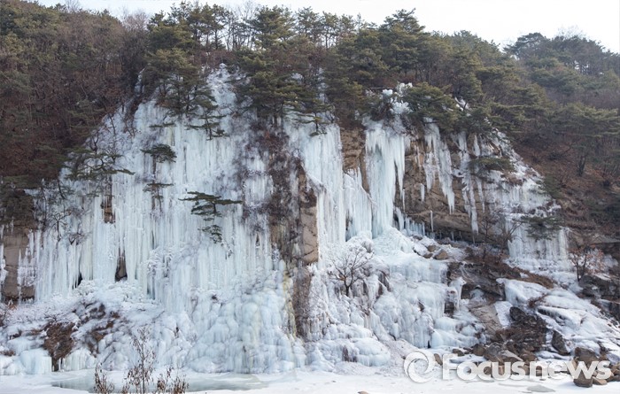 (철원=포커스뉴스) 26일 강원 철원군 한탄강 현무암 협곡이 흘러내린 물로 빙벽을 이루고 있다.