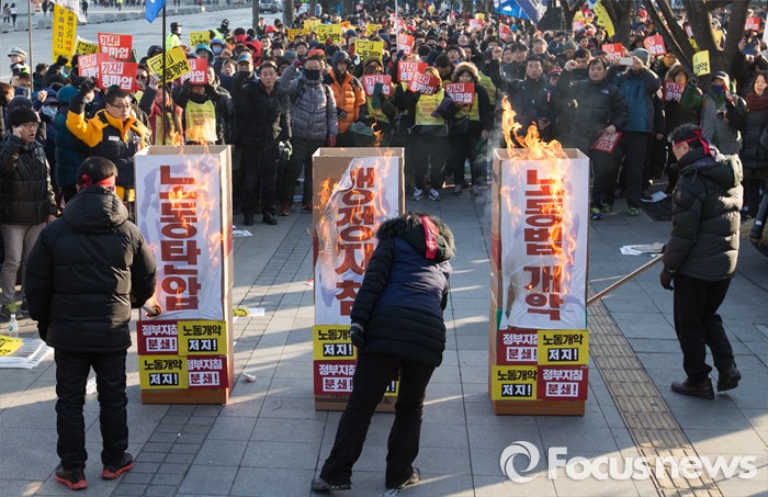 | △ 노동개혁 불태우는 민주노총 조합원들 |