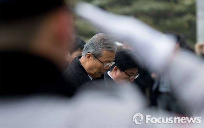 (서울=포커스뉴스) 28일 오전 서울 동작구 국립서울현충원에서 김종인 선거대책위원장 겸 비대위원장이 현충탑 참배를 하고 있다.