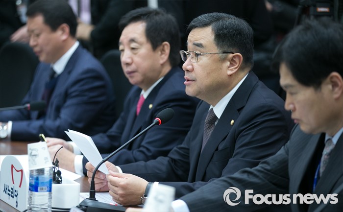 (서울=포커스뉴스) 28일 오전 서울 여의도 국회에서 열린 중고자동차 시장 선진화 관련 당정협의에 참석한 김정훈 새누리당 정책위의장이 모두발언을 하고 있다.