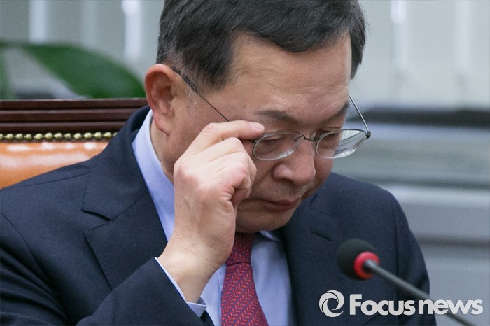 (서울=포커스뉴스) 안대희 새누리당 최고위원이 28일 오전 서울 여의도 국회에서 열린 최고위원회의에 참석해 안경을 고쳐쓰고 있다.
