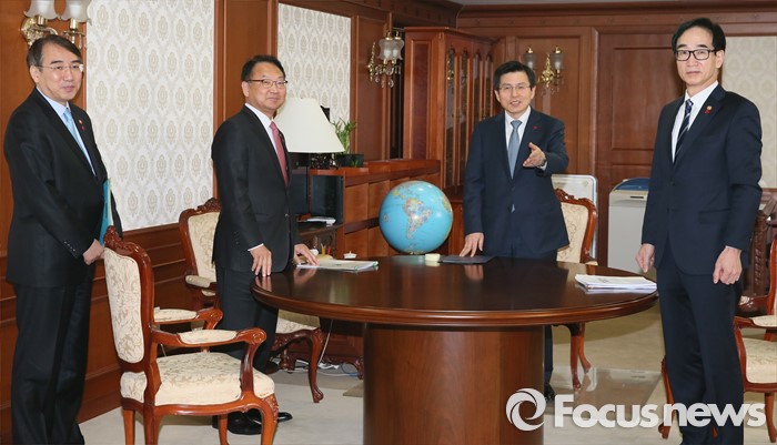 (서울=포커스뉴스) 28일 오전 서울 종로구 정부서울청사에서 이석준(왼쪽부터) 국무조정실장, 유일호 경제부총리 겸 기획재정부 장관, 황교안 총리, 이준식 사회부총리 겸 교육부장관이 총리-부총리 협의회를 갖고 있다.