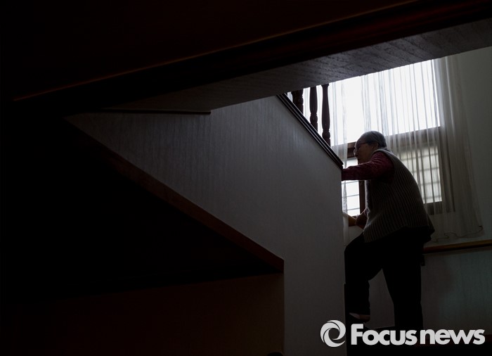 (서울=포커스뉴스) 28일 오전 서울 마포구 평화의 우리집에서 열린 일본군'위안부' 문제합의 관련, 유엔 청원서 제출 기자회견에 참석한 김복동 할머니가 회견을 마친 후 2층으로 올라가고 있다.