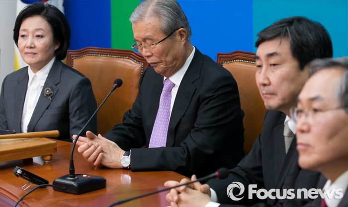 (서울=포커스뉴스) 28일 오전 서울 여의도 국회에서 열린 더불어민주당 첫 비대위원회의에 참석한 김종인(왼쪽 두번째) 위원장이 생각에 잠겨 있다.