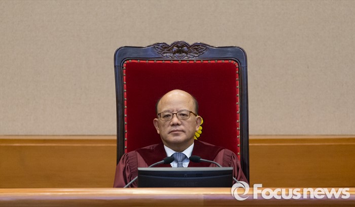 (서울=포커스뉴스) 28일 오후 서울 종로구 헌법재판소 대심판정에서 박한철 헌법재판소장이 국회 선진화법 권한쟁의 공개변론 시작을 기다리고 있다.