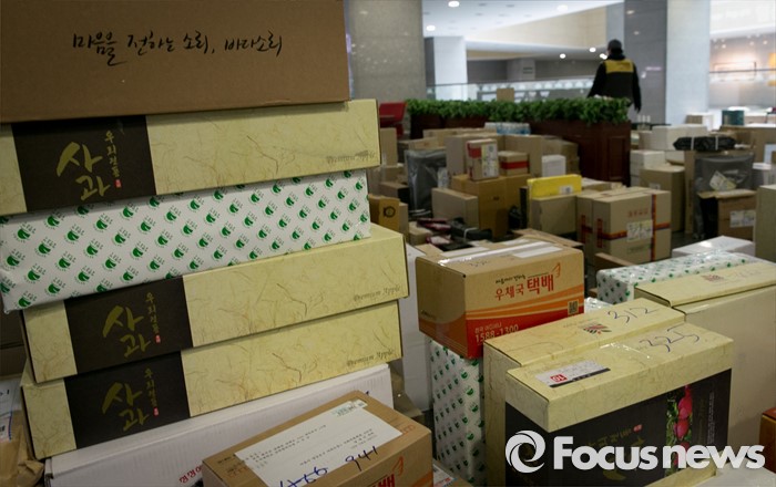 (서울=포커스뉴스) 설을 열흘여 앞둔 28일 오후 서울 여의도 국회 의원회관에 의실로 배달된 택배들이 쌓여 있다.
