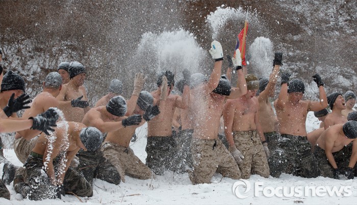 (평창=포커스뉴스) 28일 강원도 평창군 황병산 해병대 산악 종합훈련장에서 열린 '한·미 해병대 연합 동계 설한지 훈련'에 해병대 수색대대와 미 해병대 3사단 수색중대 장병들이 참가하고 있다.
