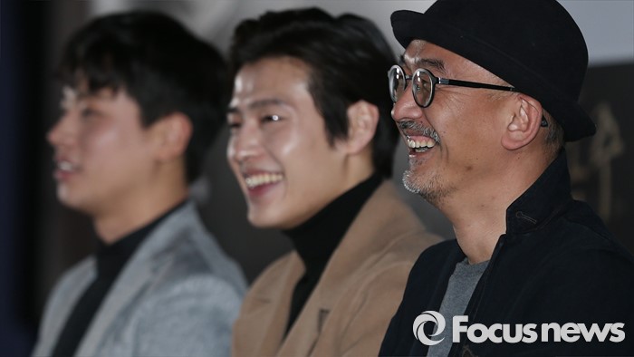 (서울=포커스뉴스) 28일 오후 서울 동대문 메가박스에서 열린 영화 '동주' 언론시사회에 참석한 영화감독 이준익(오른쪽)이 환한 미소를 짓고 있다.