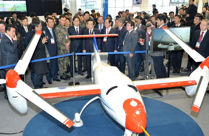 (부산=포커스뉴스) 이관섭 산업통상자원부 1차관이 28일 부산 벡스코에서 열린 2016 드론쇼 코리아(Drone Show Korea 2016)개막식에 참석해 전시물을 관람하고 있다. <사진제공=산업통산자원부>