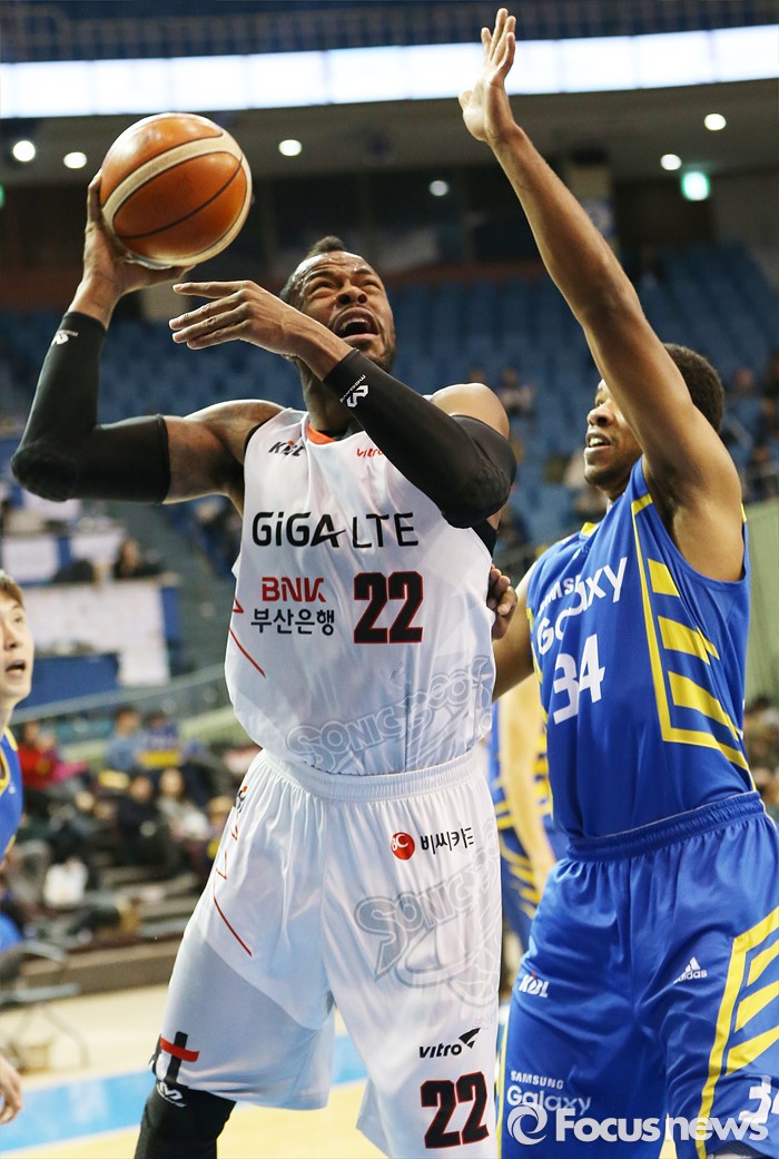 (서울=포커스뉴스) 28일 서울 잠실실내체육관에서 열린 2015-2016 프로농구 삼성-KT 경기에서 KT 블레이클리가 삼성 와이즈의 수비를 제치며 슈팅을 시도하고 있다.