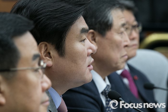(서울=포커스뉴스) 원유철(왼쪽 두번째) 새누리당 원내대표가 29일 오전 서울 여의도 국회에서 열린 원내대책회의에 참석해 모두발언하고 있다.
