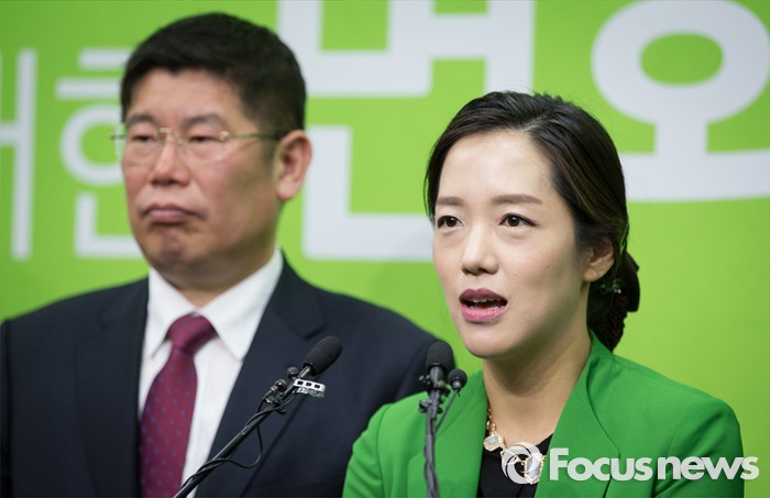 (서울=포커스뉴스) 국민의당 서울 강동을 예비후보로 나선 강연재 변호사가 29일 오전 서울 마포구 국민의당 당사에서 열린 방송 정치평론가 입당 기자회견장에서 인사말을 하고 있다.
