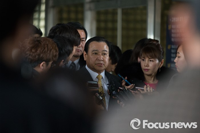 (서울=포커스뉴스) 고 성완종 전 경남기업 회장에게 불법 정치자금 3000만원을 받은 혐의로 기소된 이완구 전 국무총리가 29일 오후 서울중앙지방법원에서 열린 1심 선고공판을 끝내고 취재진의 질문에 답하고 있다. 이날 징역 8개월에 집행유예 2년, 추징금 3000만원을 선고받았다.