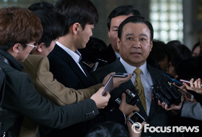 (서울=포커스뉴스) 고 성완종 전 경남기업 회장에게 불법 정치자금 3000만원을 받은 혐의로 기소된 이완구 전 국무총리가 29일 오후 서울중앙지방법원에서 열린 1심 선고공판에서 징역 8월에 집행유예 2년, 추징금 3000만원을 선고 받고 취재진 질문에 답하고 있다.