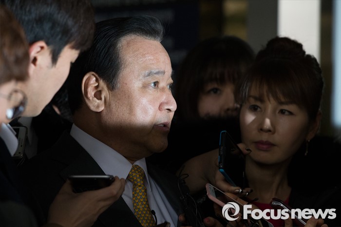 (서울=포커스뉴스) 고 성완종 전 경남기업 회장에게 불법 정치자금 3000만원을 받은 혐의로 기소된 이완구 전 국무총리가 29일 오후 서울중앙지방법원에서 열린 1심 선고공판을 끝내고 취재진의 질문에 답하고 있다. 이날 징역 8개월에 집행유예 2년, 추징금 3000만원을 선고받았다.