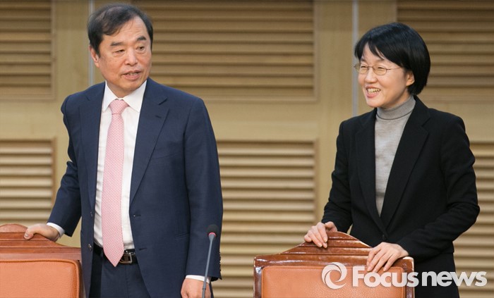 (서울=포커스뉴스) 29일 오후 서울 여의도 국회 의원회관에서 열린 '참여정부 시절 청와대 정책실장을 지낸 김병준 국민대 교수 초청 간담회, 한국정치 제3의 길을 말한다'에 참석한 박선숙(오른쪽) 국민의당 진행위원장과 김 교수가 대화하고 있다.