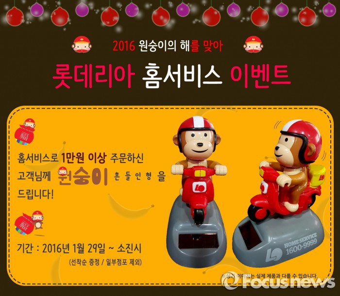 (서울=포커스뉴스) 롯데리아는 홈 서비스를 이용하는 고객에게 2016년을 상징하는 원숭이 캐릭터 흔들 인형을 29일부터 선착순 증정한다.