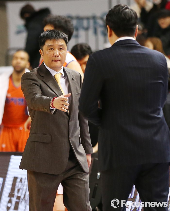 (인천=포커스뉴스) 29일 인천 삼산체육관에서 열린 2015-2016 프로농구 전자랜드-SK 경기에서 SK 문경은 감독과 전자랜드 유도훈 감독이 경기를 마치고 악수하고 있다.