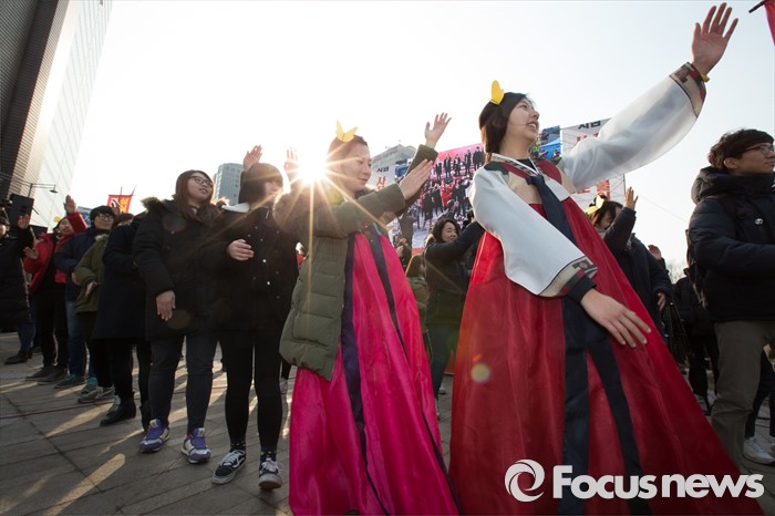 (서울=포커스뉴스) 한일 일본군 위안부 합의 무효와 정의로운 해결을 위한 전국행동 회원들이 30일 오후 서울광장에서 열린 '한일합의 무효선언 전국행동의 날' 행사에서 춤추는 퍼포먼스를 하고 있다.