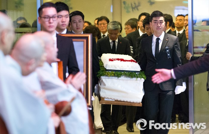 (서울=포커스뉴스) 31일 오전 서울 강남구 삼성서울병원에서 故 최종건 SK그룹 창업주의 아내 노순애 여사 발인식이 진행 되고 있다.