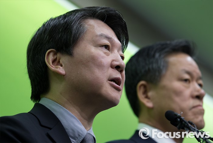 (서울=포커스뉴스) 31일 오전 서울 마포구 국민의당 당사에서 국민의당 안철수 의원이 국회 파행에 관한 입장을 표명하고 있다. 오른쪽은 주승용 원내대표.