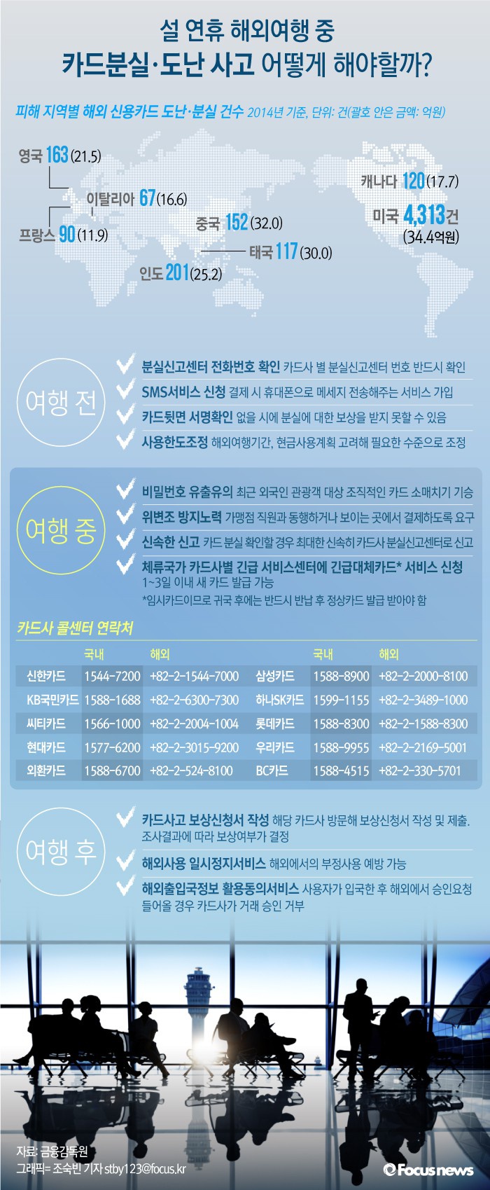 (서울=포커스뉴스) 설 연휴 해외여행 중 카드 분실이나 도난사고가 일어났을 경우 어떻게 해야 할까?