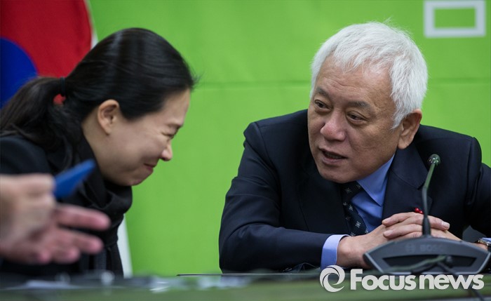 (서울=포커스뉴스) 국민의당 김한길 의원과 권은희 의원이 1일 오전 서울 마포구 국민의당 당사에서 열린 기획조정회의에서 대화하고 있다.