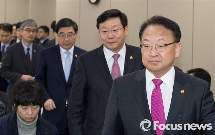 (세종=포커스뉴스) 유일호 경제부총리 겸 기획재정부장관이 1일 오전 세종시 정부세종청사 기재부 브리핑룸에서 청년과 아이들의 미래를 위한 국민 여러분께 드리는 말씀을 발표하기 위해 입장하고 있다.