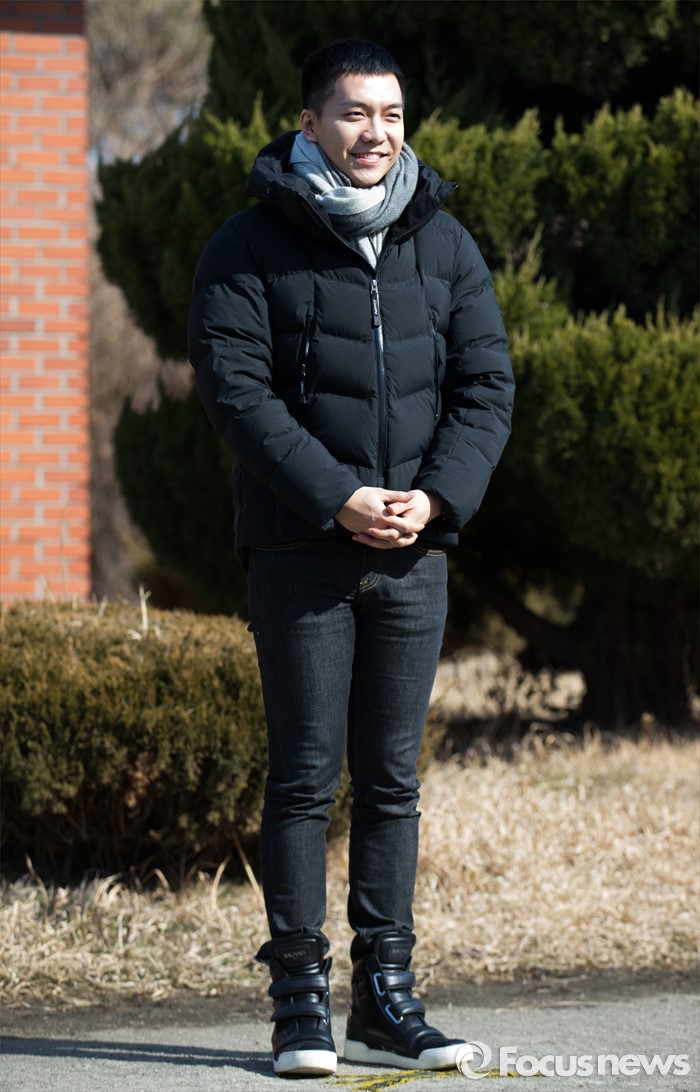 (논산=포커스뉴스) 가수 겸 배우 이승기가 1일 오후 충남 논산 육군훈련소 앞에서 입소하기 전 취재진을 향해 포즈를 취하고 있다.