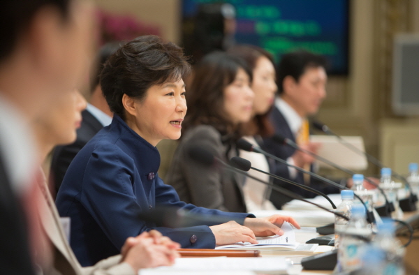 박 대통령은 이와 관련해 이날 국무회의를 주재하며 쟁점법안 처리와 관련, 야당에 대한 비판을 가할 것으로 보인다.박근혜 대통령이 26일 청와대에서 열린 올해 마지막 업무보고에서 부정부패 척결을 강조했다. <사진출처=청와대>