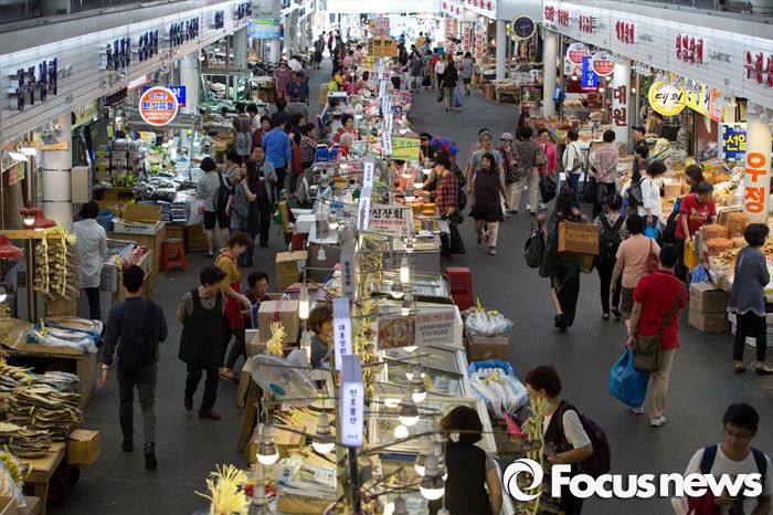 농산물 및 석유류 등 일시적 가격변동이 심한 품목을 제외하고 산출한 근원물가는 1년 전보다 1.7% 올라 13개월만에 1%로 떨어졌다.(서울=포커스뉴스) 서울 중구 오장동에 위치한 중부시장에서 시민들이 물건을 구경하고 있다. 허란 기자