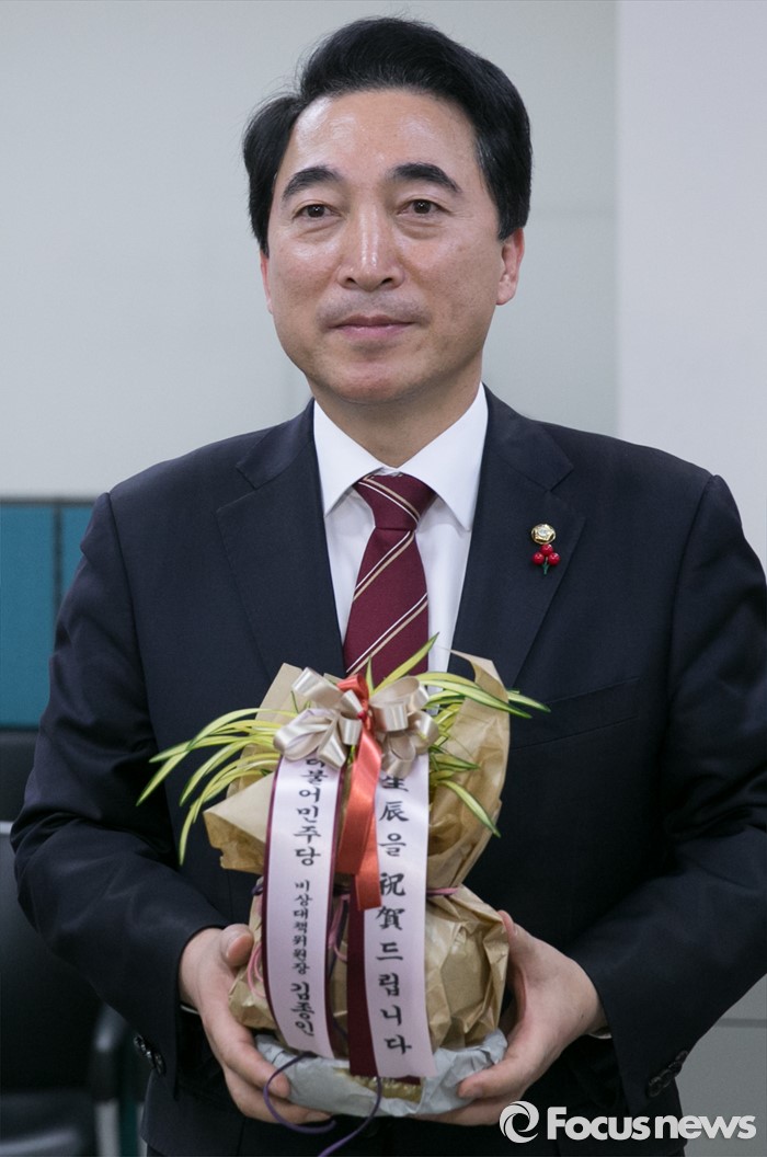 더민주는 "청와대로 보내려던 난은 '황금강'이라는, 국내에서 재배되는 상급난"이라고 밝혔다.김종인 더불어민주당 비대위원장의 비서실장인 박수현 의원이 2일 오후 서울 여의도 국회에서 박근혜 대통령의 생일 축하난을 들고 취재진을 향해 포즈를 취하고 있다. 더불어민주당은 김 위원장의 명의로 박근혜 대통령의 64번째 생일(2월 2일)을 맞아 청와대에 축하난을 보내려 했지만 청와대 측에서 '정중하게 거절하겠다'며 받지 않았다고 전했다. 2016.02.02 박동욱 기자