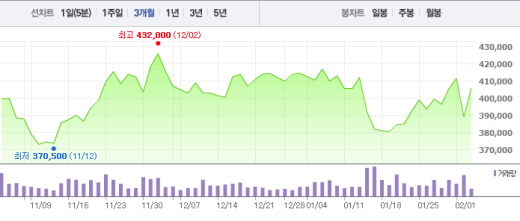 3일 오전 9시35분 현재 아모레퍼시픽은 전날보다 1만6000원(4.11%) 오른 40만5000원에 거래되고 있다.