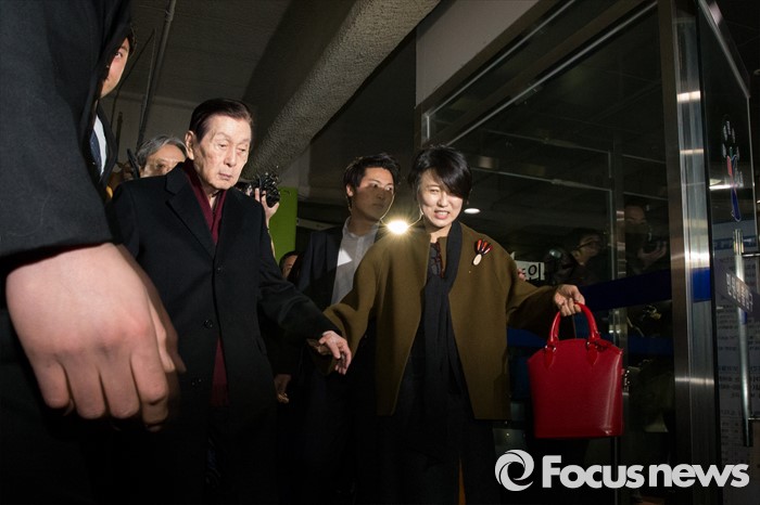 신격호 총괄회장이 도착해 차에서 내려고하자 롯데그룹 관계자들은 휠체어를 점검하는 등 준비를 했다. 하지만 신격호 총괄회장은 휠체어 탑승을 거부했다.