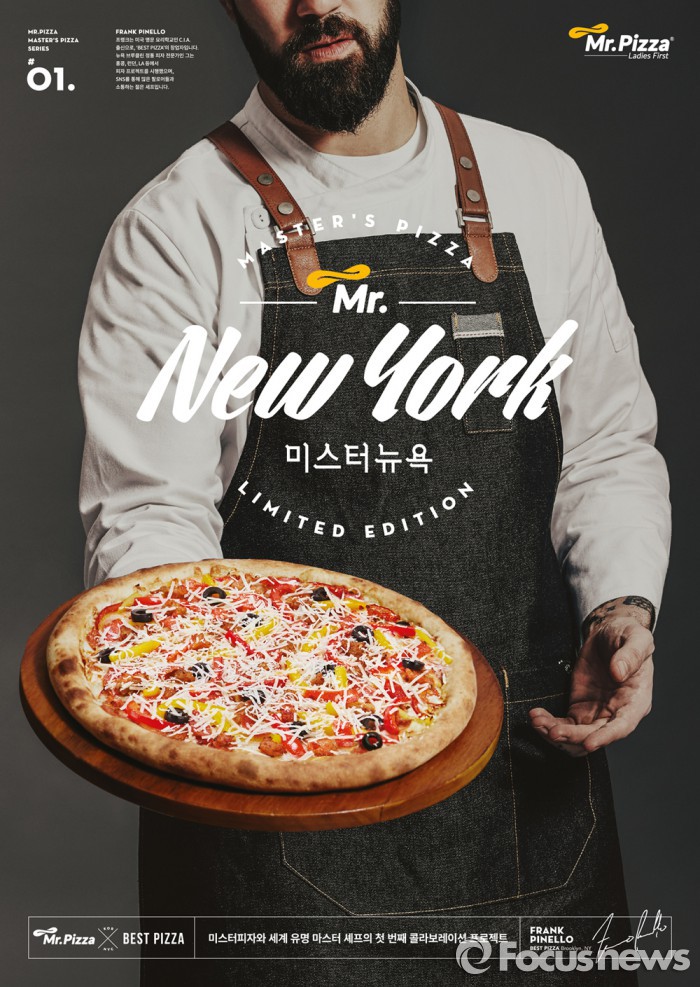 미스터 뉴욕은 마스터스 에디션(Master’s Edition) 프로젝트의 일환으로 프랭크 피넬로(Frank Pinelo) 셰프와 컬래버레이션을 통해 선보이는 제품이다. 프랭크 피넬로는 ‘BEST PIZZA’를 창업하고 홍콩·런던·로스앤젤레스 등에서 피자 컨설팅 프로젝트를 시행한 바 있는 피자 전문가다.