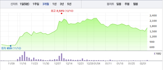 4일 오전 10시25분 현재 씨씨에스는 전날보다 1950원(12.96%) 오른 1700원에 거래되고 있다.