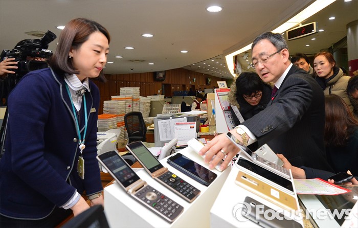 에넥스 텔레콤은 지난 2013년 12월에도 ‘1000원 요금제’를 내놓으며 알뜰폰 업계에 돌풍을 일으켰다. 당시 하루 1000명의 가입자를 모았던 1000원 요금제는 넘쳐나는 대기수요로 인해 가입을 일시 중지했었다.(서울=포커스뉴스) 13일 오후 서울 중구 중앙우체국 알뜰폰 판매창구를 찾은 최성준 방송통신위원장이 휴대폰을 살펴보고 있다.2016.01.13 양지웅 기자