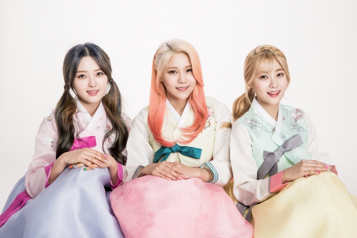 (서울=포커스뉴스) 유닛으로 변신한 AOA 크림(유나·혜정·찬미)이 고운 한복차림으로 설날 맞이 인사를 전했다.