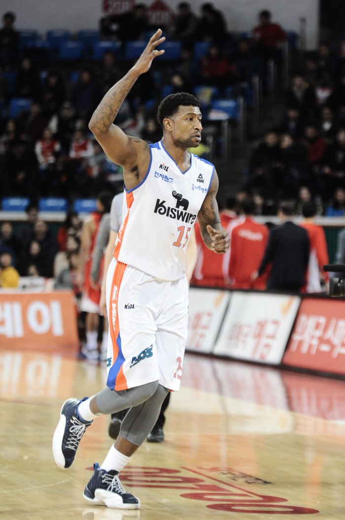 한편 KCC는 6강 플레이오프 진출을 노리는 KT를 101-94로 꺾고 8연승을 내달렸다. KT는 이날 패배로 6위 동부와의 격차가 4.5경기로 벌어졌다. 1위 모비스는 LG를 69-58로 물리치고 KCC와의 승치를 0.5경기로 유지했다.남자프로농구 전자랜드 외국인선수 리카르도 포웰이 7일 열린 SK와의 경기에서 득점한 뒤 환호하고 있다. <사진제공=프로농구연맹>