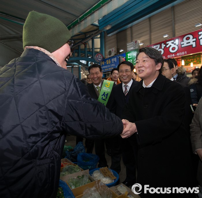 한편 김한길 상임 선대위원장은 이날 자신의 지역구임에도 안 대표의 일정에 불참했다. 김 선대위원장은 과로로 병원에 입원한 것으로 알려졌다.설 연휴를 맞아 안철수 국민의당 상임공동대표가 9일 서울 광진구 서울도시철도공사 대공원승무사업소를 찾아 지하철 기관사 및 역무원들을 격려했다.사진은 2일 오후 대전 동구 신도시장에서 상인들과 인사를 나누고 있는 안 대표. 2016.02.02 김흥구 기자