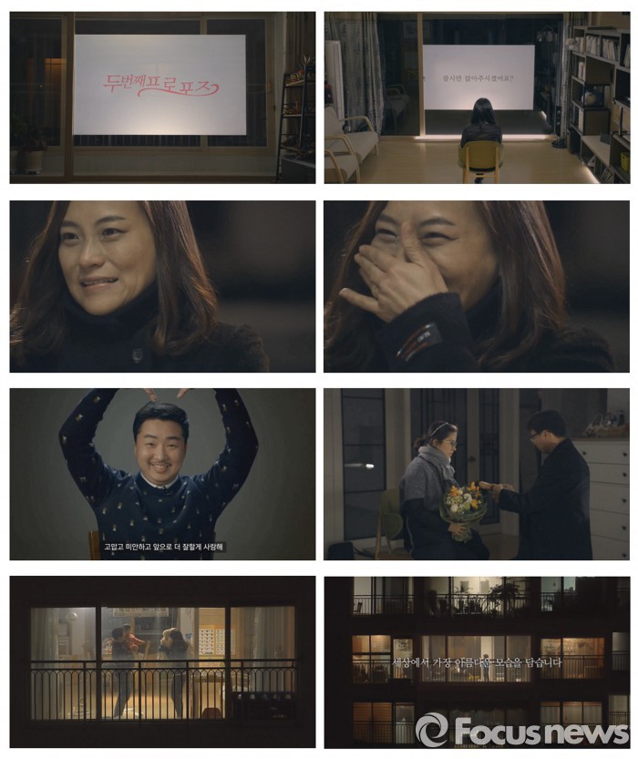 KCC 관계자는 "부부 이야기를 몰래카메라 형식으로 진솔하게 담아냈다"며 "영상편지를 보여주는 거실 창이 가족의 소중함을 지키는 매개체라는 의미를 담았다"고 제작 의도를 밝혔다.'두 번째 프로포즈' 영상 캡쳐 <사진제공=KCC창호>