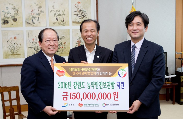 (서울=포커스뉴스) 생명보험사회공헌재단은 15일 강원도청에서 농가 음독자살예방을 위한 농약안전보관함 전달식을 개최했다고 밝혔다.