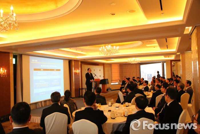 한편 롯데는 북한의 상황에 대한 임직원들의 인식을 높이기 위해 다양한 교육을 하고 있다. 올해 3월에 실시할 실무급 임원 대상 학습회 프로그램(E-MBA Alumni)에서도 북한상황에 대한 강의가 열릴 예정이다. 지난해에는 그룹 내 신규 사업 전문가 20명이 모여서 26주간에 걸쳐 북한연구회를 개최했으며, 연구한 결과물을 자료집으로 제작해 그룹 내 공유할 계획이다.소공동 롯데호텔에서 16일 그룹 임직원들을 대상으로 올해 첫 정기포럼이 열리고 있다. 이번 주제는 북한의 정치경제 현황과 전망이다.<사진제공=롯데>
