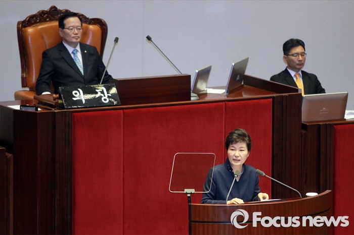 그러면서 "중소기업계는 지금의 위기를 국민과 더불어 단합된 마음으로 극복하겠다"며 "기업 본연의 경영활동에 더욱 충실함으로써 국가의 어려움에 동참하겠다"고 밝혔다.(서울=포커스뉴스) 박근혜 대통령이 16일 오전 서울 여의도 국회에서 열린 340회 국회(임시회) 3차 본회의에 참석해 국정에 관한 연설을 하고 있다.