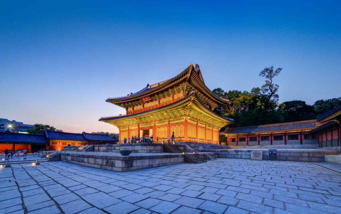 2016년 창덕궁 달빛기행의 예매 관련 사항은 인터파크 티켓(1544-1555), 행사에 대한 사항은 한국문화재재단(02-2270-1233, 1238)으로 문의하면 자세히 안내받을 수 있다.창덕궁 인정전 야경.<사진제공=문화재청>