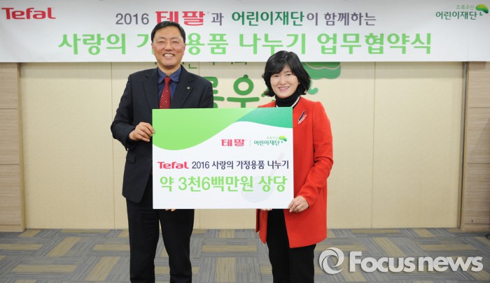 (서울=포커스뉴스) 가정용품 브랜드 테팔은 지난 16일 초록우산 어린이재단과 가정용품 후원을 위한 업무 협약식을 진행했다.